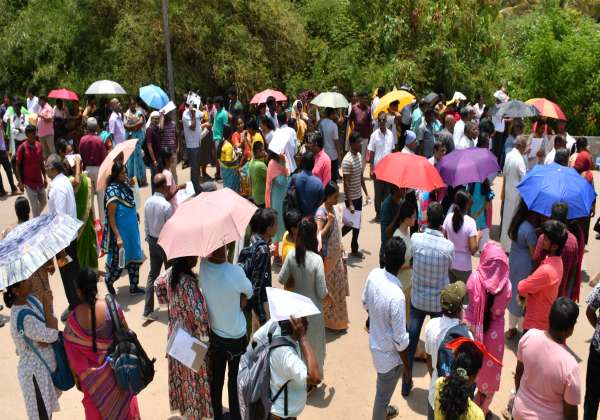 சென்னை நகரில் வெயில் தாக்கம் அதிகமாக இருந்ததால் பெரியவர்கள் கையில் குடைப்பிடித்தும்,குழந்தைகளுக்கு தலையில் தொப்பி அணிவித்தும் அழைத்து சென்றனர். இடம் கிண்டி