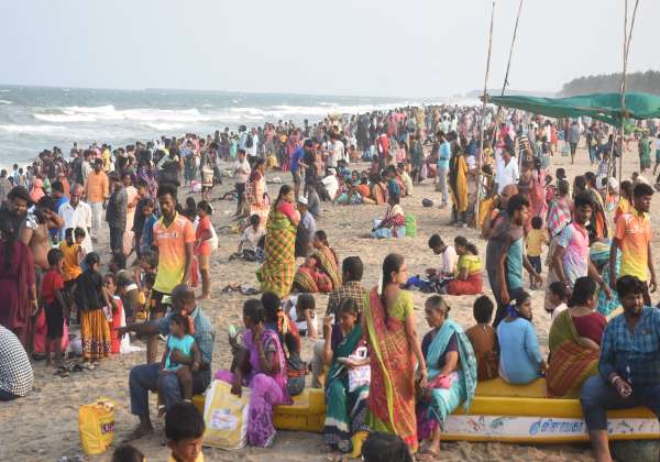 அக்கினி வெயில் தொடங்கி அனல் காற்று வீசுவதால் கடலூர் தேவனாம்பட்டினம் சில்வர் பீச் கடற்கரையில் குவிந்த மக்கள் கூட்டம்.