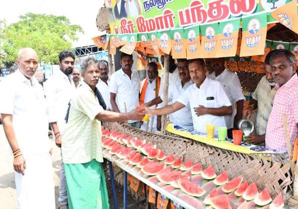 திருப்பூர், காங்கயம் ரோட்டில் பாஜ., சார்பில் நீர் மோர் பந்தல் திறக்கப்பட்டு பொதுமக்களுக்கு வழங்கப்பட்டது.
