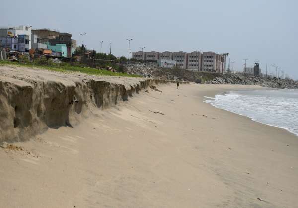 சென்னை திருவொற்றியூர் கடற்கரை பகுதியில் மண் அரிப்பு அதிகமாக காணப்பட்டன. இடம்: திருச்சினாகுப்பம்.