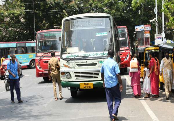 குறுகிய இடத்தில் நாள்தோறும் வாகன நெரிசலில் சிக்கும் பேருந்துகள் மற்றும் வாகனங்கள்.இடம் : கிண்டி பேருந்து நிலையம்.