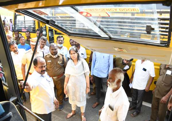 பொள்ளாச்சி வட்டாரப் போக்குவரத்து அலுவலகம் சார்பில் தனியார் பள்ளி வாகனங்கள் ஆய்வு நடந்தது.
