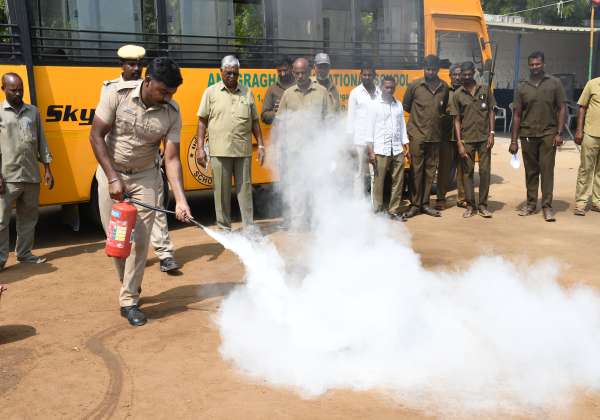 உடுமலை நேதாஜி மைதானத்தில் வட்டார போக்குவரத்து அலுவலகம் சார்பில் தனியார் பள்ளி வாகனங்களில் தீ ஏற்பட்டால் எப்படி அனைப்பது குறித்து தீயனைப்பு போலீஸ்சார் செயல் விளக்கம் செய்து காண்பித்தனர்,