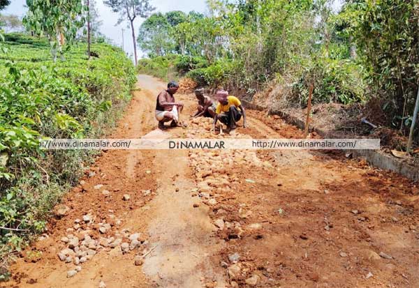 நகராட்சியை நம்பி பயன் இல்லை... நீலகிரி மாவட்டம் நெல்லியாளம் நகராட்சியில் கூவமூலா கிராமத்திற்கு செல்லும் சாலையை கிராம மக்களே இணைந்து சீரமைத்தனர்.