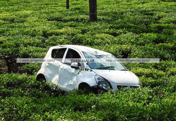 நீலகிரி மாவட்டம் பந்தலூர் அருகே இந்திராநகர் பகுதியில் தேயிலை தோட்டத்தில் கார் கவிழ்ந்து விபத்துக்குள்ளானது. சுற்றுலா பயணிகள் அதிர்ஷ்டவசமாக உயிர் தப்பினர்.