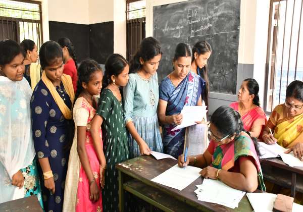 திருப்பூர், ஜெய்வாபாய் மாநகராட்சி பெண்கள் பள்ளியில் மாணவியர் சேர்க்கை நடந்தது.