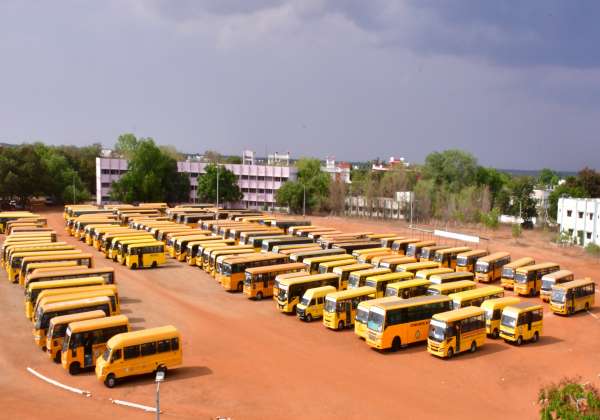 மாவட்டத்தில் உள்ள பள்ளி வாகனத்தை அதிகாரிகள் செய்வதற்காக சிவகங்கை கலெக்டர் அலுவலகம் மைதானத்தில் நிறுத்தி வைக்கப்பட்டுள்ள வாகனங்கள்.