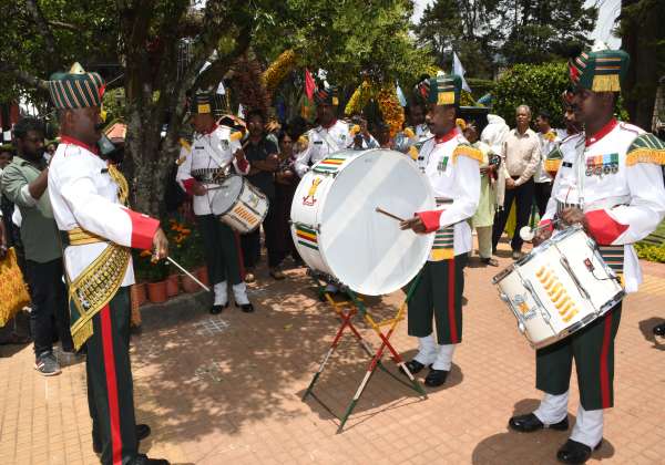 ஊட்டி தாவரவியல் பூங்காவில், மலர் கண்காட்சியில், வெலிங்டன் ராணுவ மைய பேன்ட் கச்சேரி நடைபெற்றது
