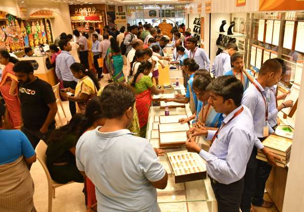 அட்சய திருதியை முன்னிட்டு சென்னை, தி.நகரில் உள்ள நகை கடையில் நகைகள் வாங்க குவிந்த பொதுமக்கள்.