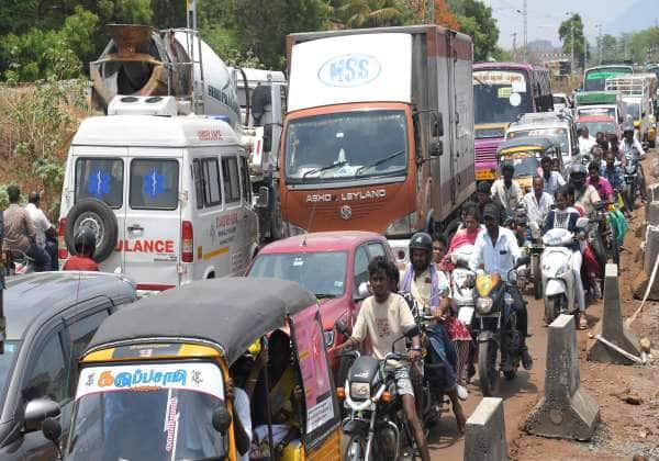 தேனியில் நேற்று பெய்த மழையால் சகதியா மாறிய ரோடால் ஊர்ந்து சென்ற வாகனங்களால் ஏற்பட்ட கடுமையான போக்குவரத்து நெரிசலில் சிக்கிய ஆம்புலன்ஸ். இடம் : தேனி - மதுரை ரோடு.