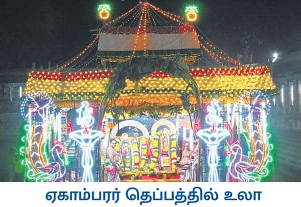தைப்பூசத்தையொட்டி, காஞ்சிபுரம் ஏகாம்பரநாதர் கோவிலில் 3 நாட்கள் நடைபெறும் தெப்போத்சவம் துவங்கியது. இதில் ஏலவார்குழலி அம்பிகையுடன், ஏகாம்பரநாதர் மலர் அலங்காரத்தில் அலங்கரிக்கப்பட்ட தெப்பத்தில் எழுந்தருளி உலா வந்தார்.