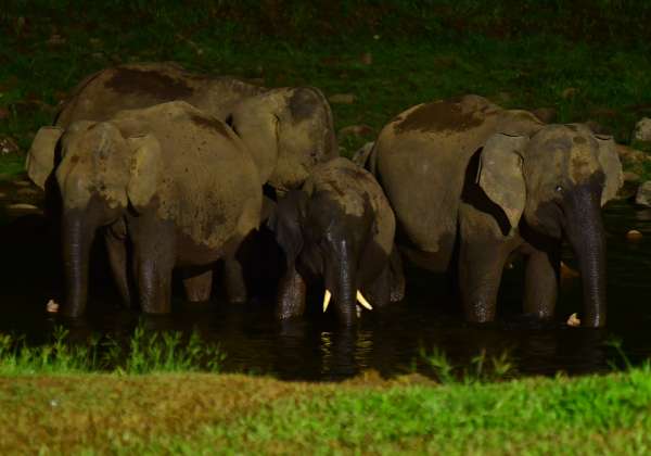 பகலில் வெயில் கொஞ்சம் கொளுத்தி எடுக்க, இரவில் ஆற்றங்கரையோரம் படையெடுக்கும் யானைகள். இடம்: கேரள மாநிலம் இடுக்கி மாவட்டம்