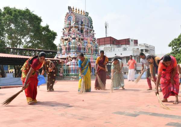 திருப்பூர், விஸ்வேஸ்வரர் கோவில் தேர் திருவிழாவை முன்னிட்டு சிவனடியார் கூட்டமைப்பு சார்பில் உழவாரப்பணிகள் நடந்தது.