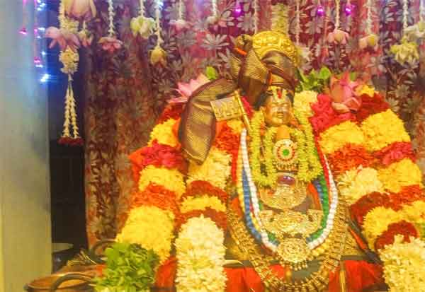 ராமானுஜர் ஜெயந்தியையொட்டி, சேலம், கோட்டை அழகிரிநாதர் கோயிலில் சிறப்பு அலங்காரத்தில் காட்சியளித்த ராமானுஜர்.