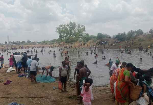 கோடையில் ஆனந்தமாக திண்டுக்கல் செல்லமந்தாடி குல்வாரி குளத்தில் நடந்த மீன்பிடித் திருவிழாவில் ஏராளமானவர்கள் பங்கேற்று மீன்களை அள்ளிச் சென்றனர்.