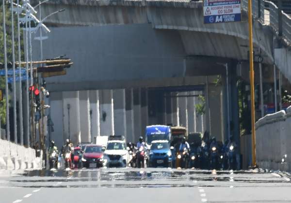 சென்னையில் வெயிலின் தாக்கம் அதிகரித்து காணப்பட்டதால் சாலையில் தோன்றிய கானல் நீர்.இடம்: ஜி.எஸ்.டி.சாலை.