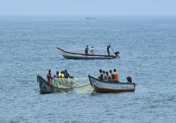 வலைகளை வீசி மீன்களுக்காக காத்திருக்கும் மீனவர்கள். இடம்.நேப்பியர் முகத்தூவரம்