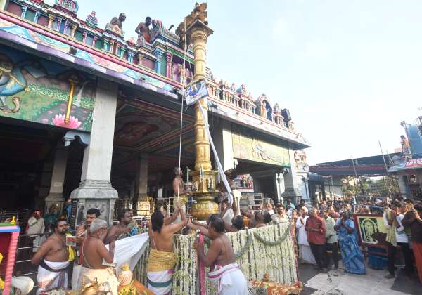சென்னை, வடபழனி ஆண்டவர் கோயிலில் வைகாசி விசாக பிரம்மோற்சவ விழா கொடியேற்றத்துடன் துவங்கியது.
