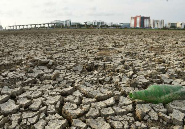 சென்னையில் ஏற்பட்ட சமீபத்திய வெள்ளத்தில், படகு மூலம் செல்லப்பட்ட பள்ளிக்கரணை சதுப்புநிலம் பகுதி தற்போது முற்றிலுமாக வறண்டு தரிசு நிலமாக மாறியுள்ளது.இடம் : பெரும்பாக்கம்.