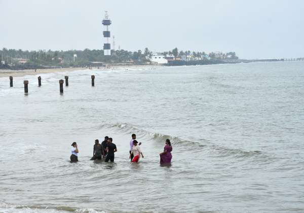 ஆபத்தை உணராத குளியல்!புதுச்சேரிக்கு சுற்றுலா வரும் சுற்றுலா பயணிகள் கடலில் இறங்கி குளிக்கின்றனர்.
