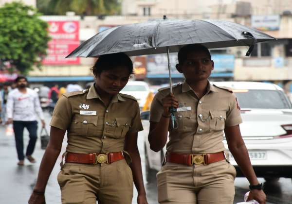 சென்னை நகரில் வெயில் தாக்கம் அதிகமாக இருந்ததால் பெரியவர்கள் கையில் குடைப்பிடித்தும்,குழந்தைகளுக்கு தலையில் தொப்பி அணிவித்தும் அழைத்து சென்றனர். இடம் கிண்டி