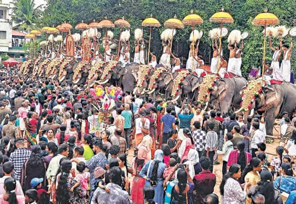 கேரள மாநிலம், பாலக்காடு மாவட்டம், கொடுந்திரப்புள்ளி ஆதிகேசவ புரம் ஐயப்பன், ஆதிகேசவ பெருமாள் கோவிலில் மகாநவமி நவராத்திரி உற்சவத்தை முன்னிட்டு, 15 யானைகளின் அணிவகுப்பில் முத்துமணி வண்ண குடைகள் மாற்றும் நிகழ்ச்சி நடந்தது.