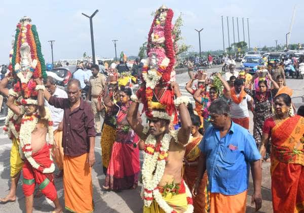 கோவை குறிச்சி பொங்காளியம்மன் கோவில் விழாவை முன்னிட்டு சக்தி கரகம் மற்றும் பால்குடம் எடுத்து நேர்த்திகடன் செலுத்தும் பக்தர்கள்.