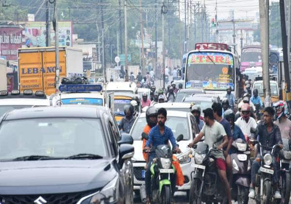 திருப்பூர், குமார் நகர் சிக்னலில், கடும் போக்குவரத்து நெரிசல் ஏற்பட்டது.