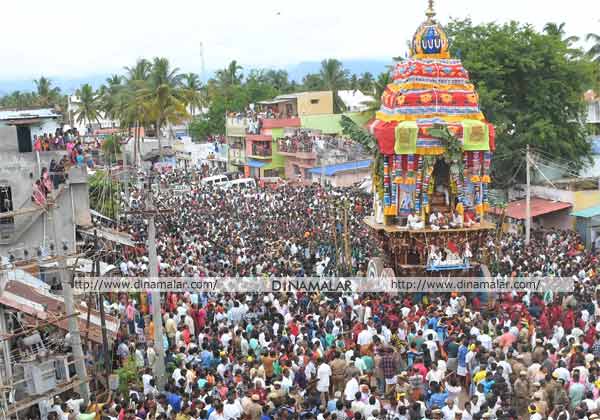 தேனி மாவட்டம் கோம்பை திருமலைராயப் பெருமாள் கோயில் வைகாசி விசாக தேரோட்டம் நடந்தது. பல்லாயிரக்கணக்கான பக்தர்கள் வடம் பிடித்து தேர் இழுத்தனர்.
