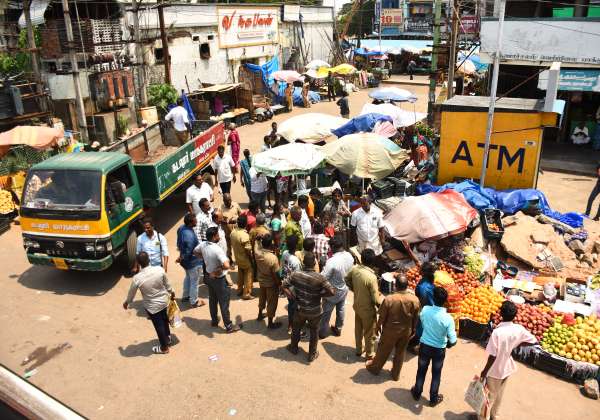 தீபாவளி பண்டிகை ஒட்டி கோவை பெரிய கடை வீதியில் புத்தாடை வாங்க குவிந்த மக்கள்.