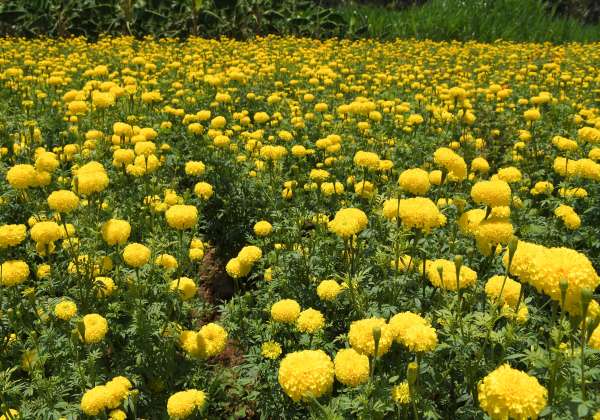 கடலூர் பண்ருட்டி அடுத்த திராசு கிராமத்தில் விவசாயிகள் பயிர் செய்யப்பட்ட மஞ்சள் சாமந்தி பூ பூத்து குலுங்கியது.