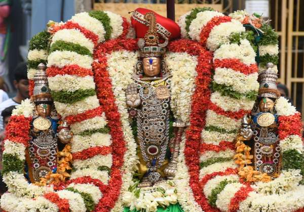 வைகாசி பிரமோற்சவத்தை முன்னிட்டு 25 அடி உயர திருத்தேரில் ஸ்ரீதேவி -பூதேவி சமேதராக உற்சவர் பவள வண்ண பெருமாள் தேரில் எழுந்தருளி பக்தர்களுக்கு காட்சியளித்தார். இடம்:காலடிப்பேட்டை, திருவொற்றியூர்.