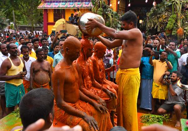 விழுப்புரம் மாவட்டம் வானூர் அடுத்த இடையஞ்சாவடி வர்ணமுத்து மாரியம்மன் கோவில் பிரம்மோற்சவ விழாவை முன்னிட்டு அம்மனுக்கு விரதம் இருந்த பக்தர்களுக்கு மிளகாய் பொடி அபிஷேகம் உள்ளிட்ட பல்வேறு திரவியங்களால் அபிஷேகம் செய்யப்பட்டது.