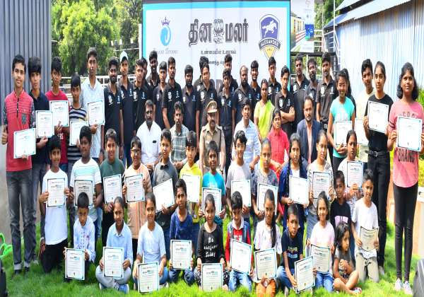 தினமலர் நாளிதழ், அலெக்சாண்டர் ஈக்வெஸ்டிரியன் கிளப் மற்றும் ஈகுவைன் டிரீம்ஸ் சார்பில் கோடைகால இலவச குதிரையேற்ற பயிற்சி முகாம் நிறைவு விழா கோவை நவஇந்தியா அலெக்சாண்டர் ஈக்வெஸ்டிரியன் கிளப்பில் நடந்தது. இதில் பங்கேற்றவர்களுடன் (இடமிருந்து) இன்டிஜீனஸ் ஹார்ஸ் சோசைட்டி செயலாளர் பிரகதீஸ்வரன், தினமலர் நாளிதழ் கோவை பதிப்பு செய்தி ஆசிரியர் விஜயகுமார்,மாநகர போலீஸ் துணை கமிஷனர் சரவணகுமார், ஈகுவைன் டிரீம்ஸ் முதன்மை செயல் அதிகாரி சக்தி பாலாஜி, இயக்குனர் பாரதி, கால்நடை மருத்துவர் வேடியப்பன் உள்ளிட்டோர்.