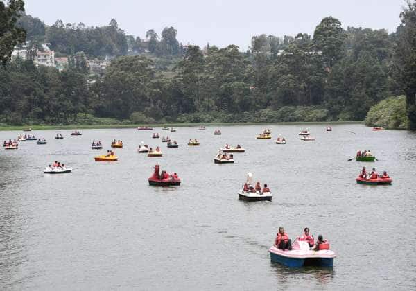 ஊட்டி படகு இல்லத்தில், ஏராளமான சுற்றுலா பயணிகள் படகு சவாரி சென்றனர்.