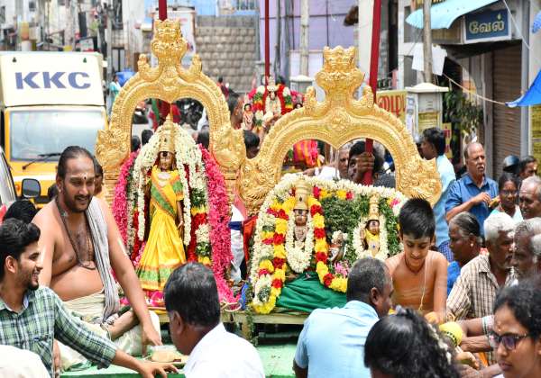 திருப்பூர், ஸ்ரீ விஸ்வேஸ்வரர் ஸ்ரீ வீரராகவப்பெருமாள் கோயில் வைகாசி விசாக தேர்த்திருவிழா மஞ்சள் நீராட்டு உற்சவ திருவீதி உலா நடந்தது.