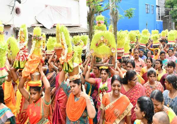 திருப்பூர், கொடிக்கம்பம் மூர்த்தி நகர் முத்துமாரியம்மன் கோயில் பூச்சாட்டு பொங்கல் விழாவில் முளைப்பாரி ஊர்வலம் நடந்தது.