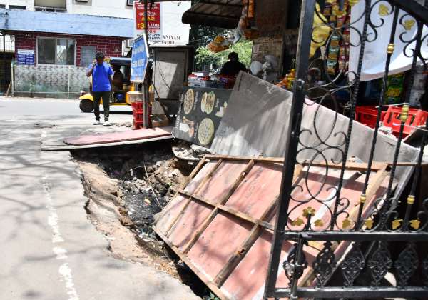 அரைகுறையாக விடப்பட்டுள்ள மழை நீர் வடிகால் பணி. இடம் : பெருமாள் கோவில் தெரு, அரும்பாக்கம்