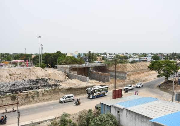 விழுப்புரம் எல்லீஸ்சத்திரம் புறவழிச்சாலையில் நகாய் மூலம் நடைபெறும் மேம்பாலம் பணிகள் இழுபறியாக நடக்கிறது