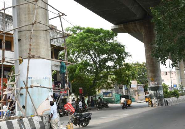 மெட்ரோ தூண்களில் தற்போதுள்ள ஓவியங்களை நீக்கும் பணி நடைபெற்று வருகின்றன இந்த தூண்களில் தனியார் விளம்பரங்கள் செய்து வருவாய் ஈட்ட சென்னை மெட்ரோ ரயில் நிறுவனம் திட்டமிட்டுள்ளது.இடம்: திருவொற்றியூர்.