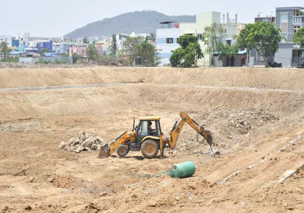மங்கலேரி குளத்தை 1.40 கோடி ரூபாய் செலவில் மேம்படுத்தும் பணிகள் நடந்து வருகின்றன. இடம்: பெருங்களத்துார்.