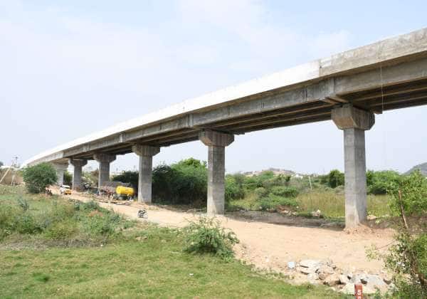 திருத்தணி புறவழி சாலையில் ரயில்வே மேம்பாலம் பணி தூண்கள் அமைக்கப்பட்டு கம்பீரமாக காட்சியளிக்கிறது