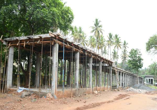 மேட்டுப்பாளையம் அருகே உள்ள வனபத்ரகாளியம்மன் திருக்கோவிலில் பவானி ஆற்றில் இருந்து திருக்கோவில் வரை நடைபாதை மண்டபம் கட்டும் பணி தீவிரமாக நடந்து வருகிறது.