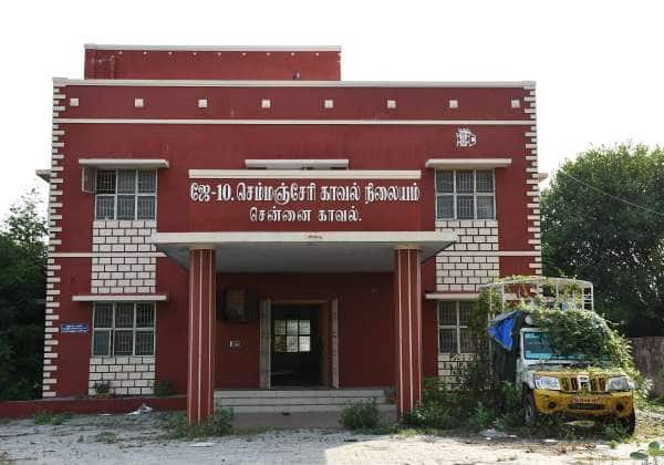 புதர்மண்டிப் போய் கிடக்கும் செம்மஞ்சேரி புதிய காவல் நிலையம்.இடம் : சோழிங்கநல்லூர்.