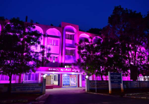 மின் ஒளியில் ஜொலிக்கும் சிவகங்கை கலெக்டர் அலுவலகம்.