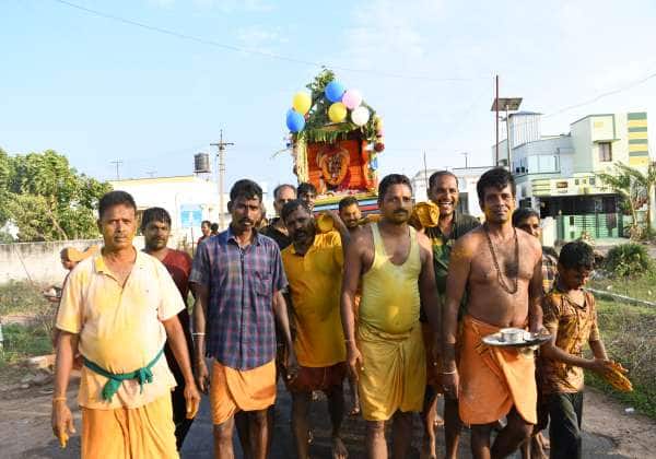 உடுமலை சின்னவீரம்பட்டி இந்திராநகர் ஜக்கம்மாள் கோவில் திருவிழாவையொட்டி நடந்த மஞ்சள் நீராட்டு விழாவில் அம்மன் வீதி உலா நடந்தது.