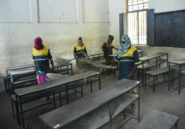 ஜூன் 6ம் தேதி பள்ளிகள் திறக்கப்படவுள்ள நிலையில் திருப்பூர், கே.எஸ்.சி பள்ளியில் தூய்மைப் பணிகள் நடந்து வருகிறது.