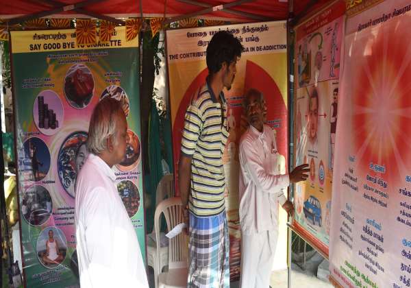 புகையிலை ஒழிப்பு தினத்தை முன்னிட்டு கோவை அரசு மருத்துவமனை எதிரேவுள்ள பஸ் ஸ்டாண்டில் பிரஜாபிதா பிரம்மா குமாரிகள் ஈஸ்வரிய விஷ்வ வித்யாலயம் சார்பில் கண்காட்சி நடந்தது.