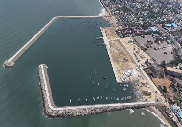 200 கோடி ரூபாய் மதிப்பீட்டில், சென்னை திருவெற்றியூர் குப்பத்தில் புதிதாக கட்டப்பட்டு வரும் சூறை மீன்பிடி துறைமுகம்