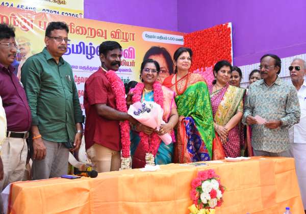 திண்டிவனம் அரசு பொது மருத்துவமனையில் செவிலியறாக பணிபுரிந்து ஓய்வு பெறும் தமிழ்செல்விக்கு சௌமியா அன்புமணி நினைவு பரிசு வழங்கினார்.